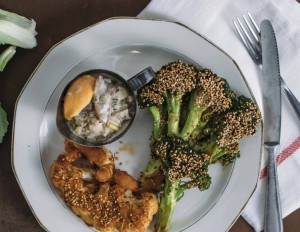 Die Brokkoliröschen in den Sesamkörnern wälzen. Die Blumenkohlsteaks